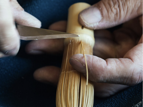Van de met handgeschilderde kimono tot het snijden van de traditionele bamboe klopper voor de matcha thee.