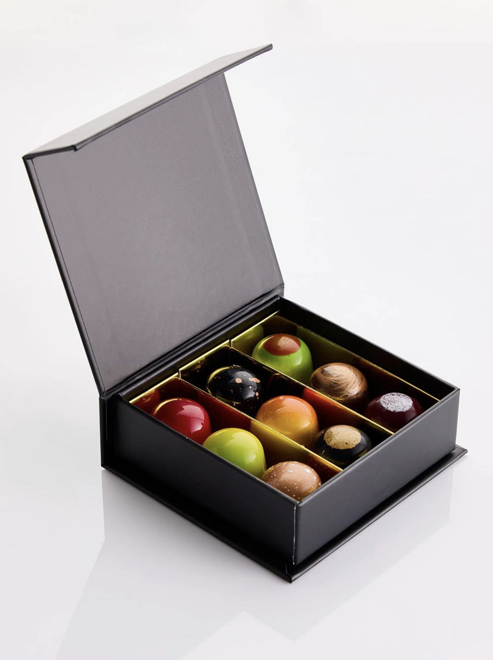 Chocolade box met 9 exclusieve pralines – geen bewaarmiddelen, gemaakt met kwaliteitsvolle ingrediënten en AZO free kleuren