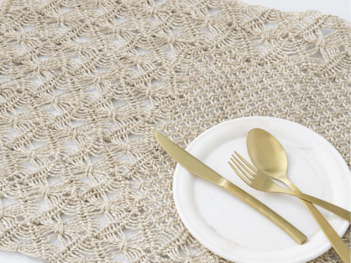 Deze macramé tafelloper uit Bangladesh is een lust voor het oog.