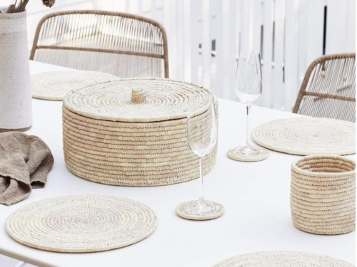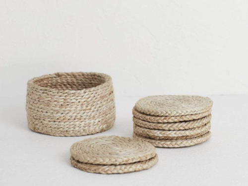 De set wordt geleverd in een praktische mandje om uw onderzetters netjes op te bergen. Gebruik het mandje eventueel ook om het bestek op tafel te plaatsen. Combineer de onderzetters met een set placemats van Jute om de tafelsetting compleet te maken.
